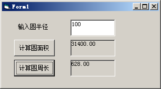 VB程序题:输入半径,计算圆周长和圆面积,如下图所示。